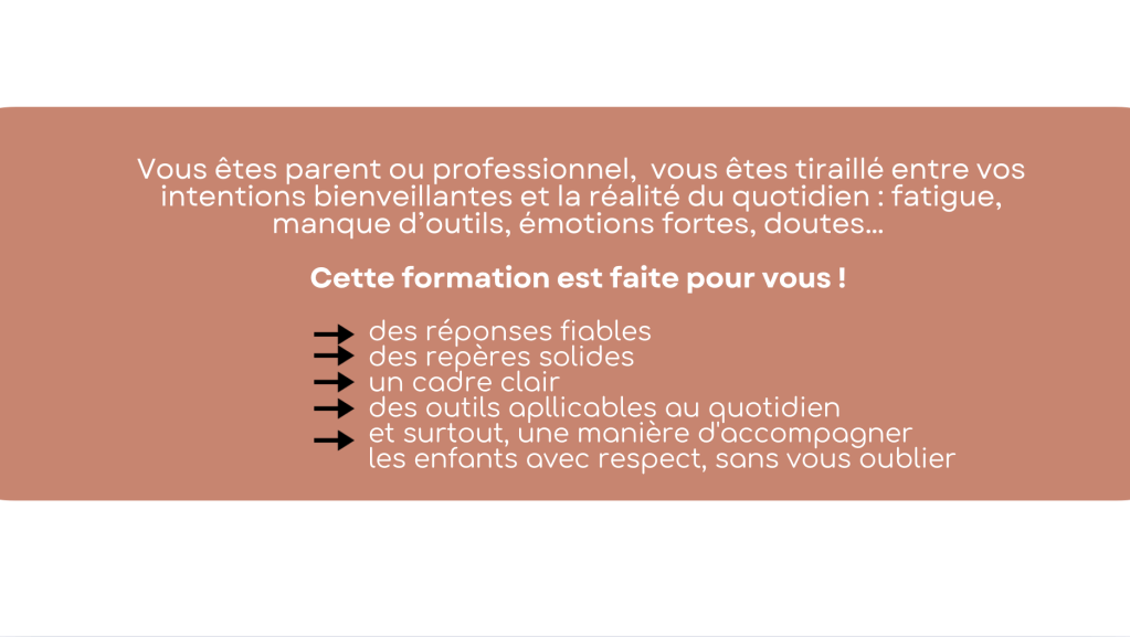 Oui, tout à fait. Que vous soyez parent, professionnel.le de la petite enfance, enseignant.e ou simplement curieux.se d’une autre manière d’accompagner les enfants, cette formation vous apportera des outils concrets, des pistes de réflexion et une posture bienveillante à incarner au quotidien.