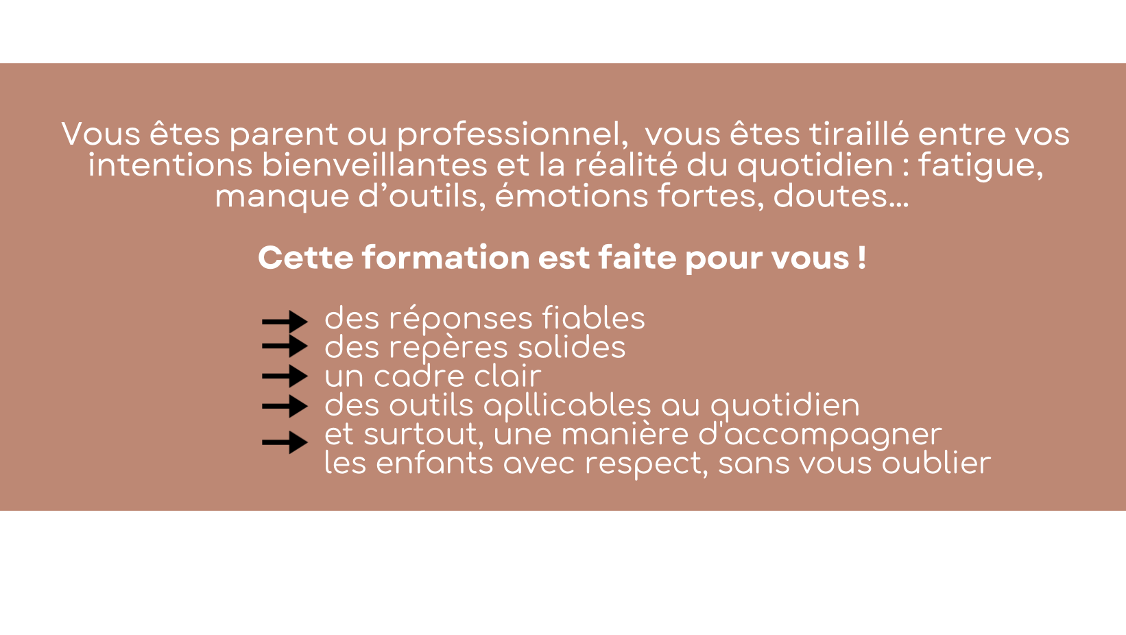 Oui, tout à fait. Que vous soyez parent, professionnel.le de la petite enfance, enseignant.e ou simplement curieux.se d’une autre manière d’accompagner les enfants, cette formation vous apportera des outils concrets, des pistes de réflexion et une posture bienveillante à incarner au quotidien.